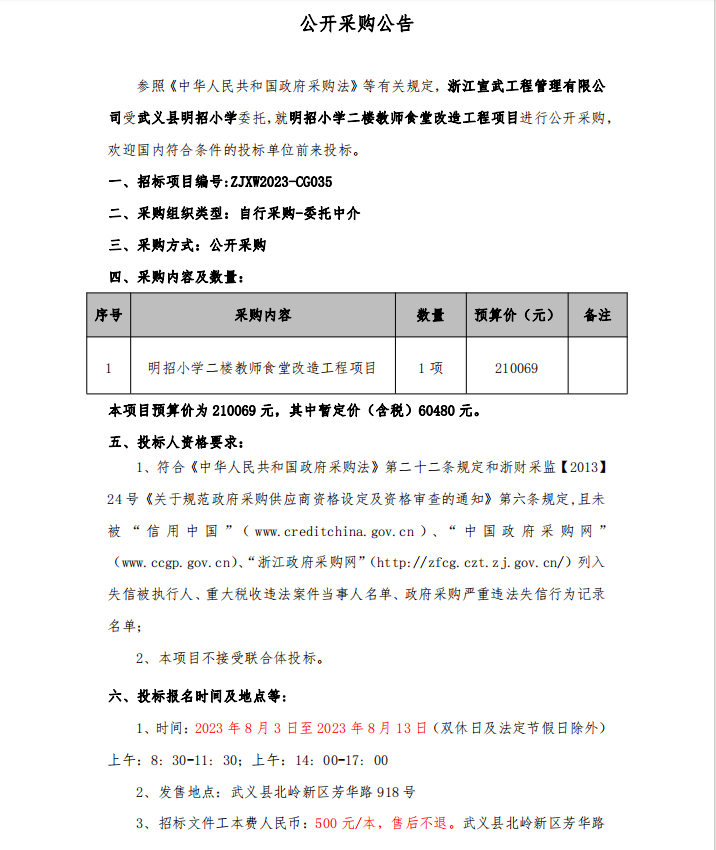 明招小学二楼教师食堂改造工程项目招标公告