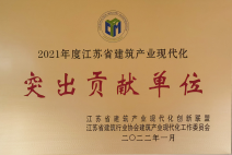 为进一步发挥先进典型的模范带头作用,营造“树立典型、弘扬先进”的行业氛围,推动江苏省建筑产业现代化事业高质量发展,近日,江苏省建筑业协会对在2021年江苏省建筑产业现代化创新发展中作出突出贡献的单位和个人进行了表彰,苏中建设荣获2021年度江苏省建筑产业现代化“突出贡献单位”称号。